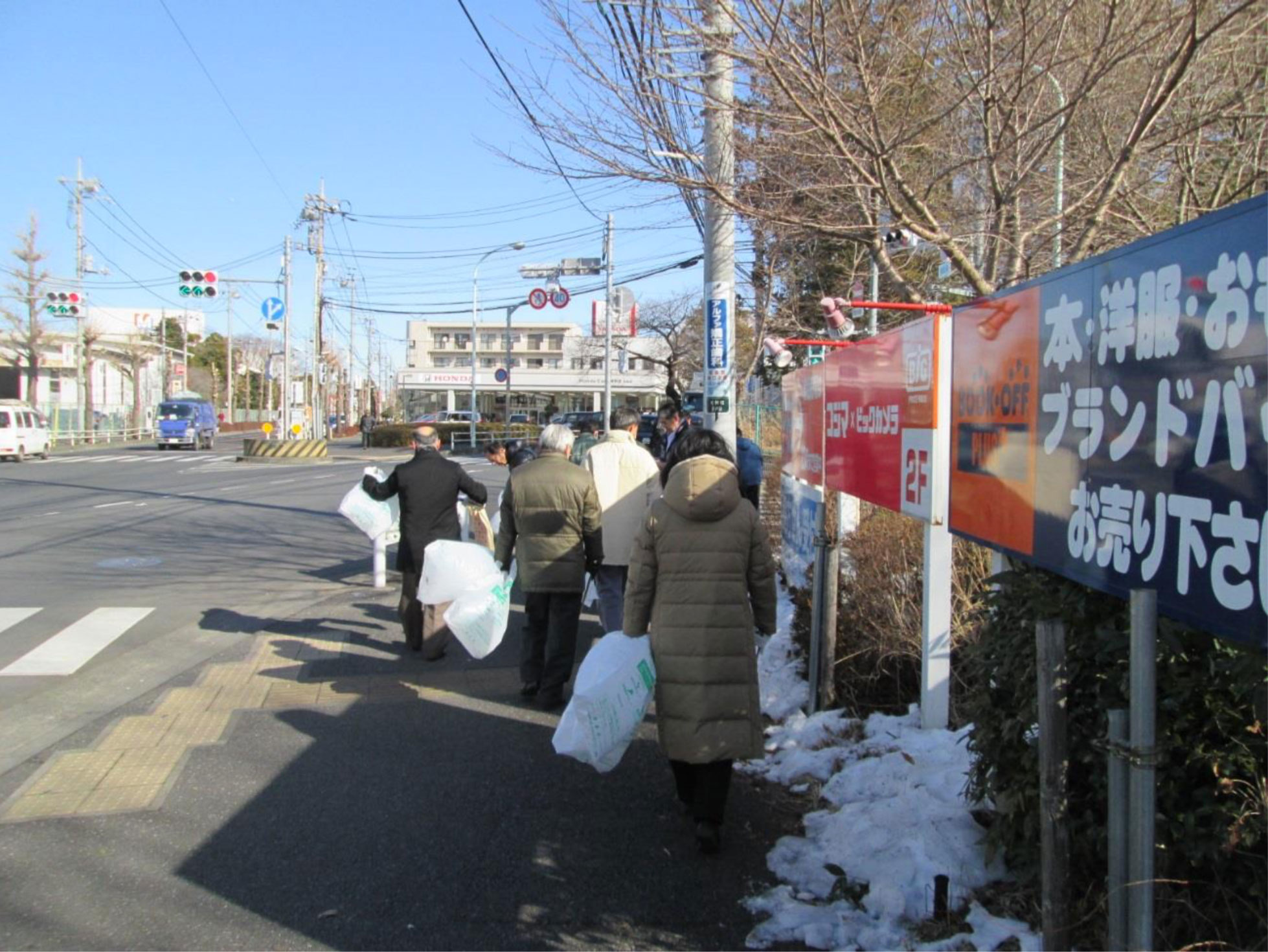 当日は、風が冷たかったものの天気に恵まれ、陽が当たる歩道は雪もだいぶ解けて 実施の判断をして良かったなと胸を撫で下ろす気持ちで参加しました。(事務局)