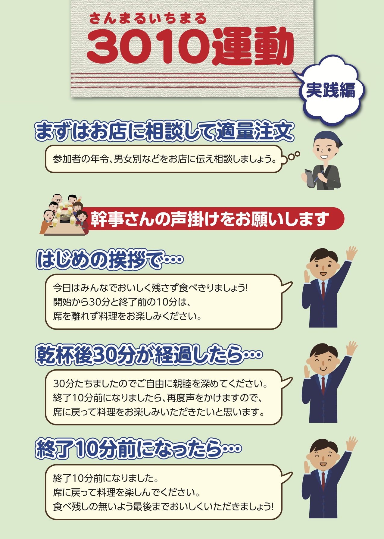 年末から新年にかけて飲食する機会が多くなるので、幹事さんへ声掛けいただくとともに出席者への周知をぜひお願いします。